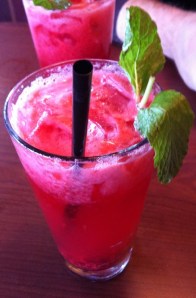 And with warmer weather comes a cold drink. I imagine a drink that I had last summer. It was a tall, frothy, pink-raspberry lemonade. A sprig of mint dangled across the glass rim. The sweet raspberry scent filled the air. Sounds so good doesn’t it?