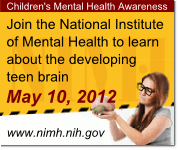 On May 10, 2012 as part of National Children’s Mental Health Awareness, NIMH is sponsoring a videocast panel of children’s mental health researchers. Panelists will discuss neuroscience research findings related to: teen brain development, cognition and emotional and behavioral growth, and treatment for teens.